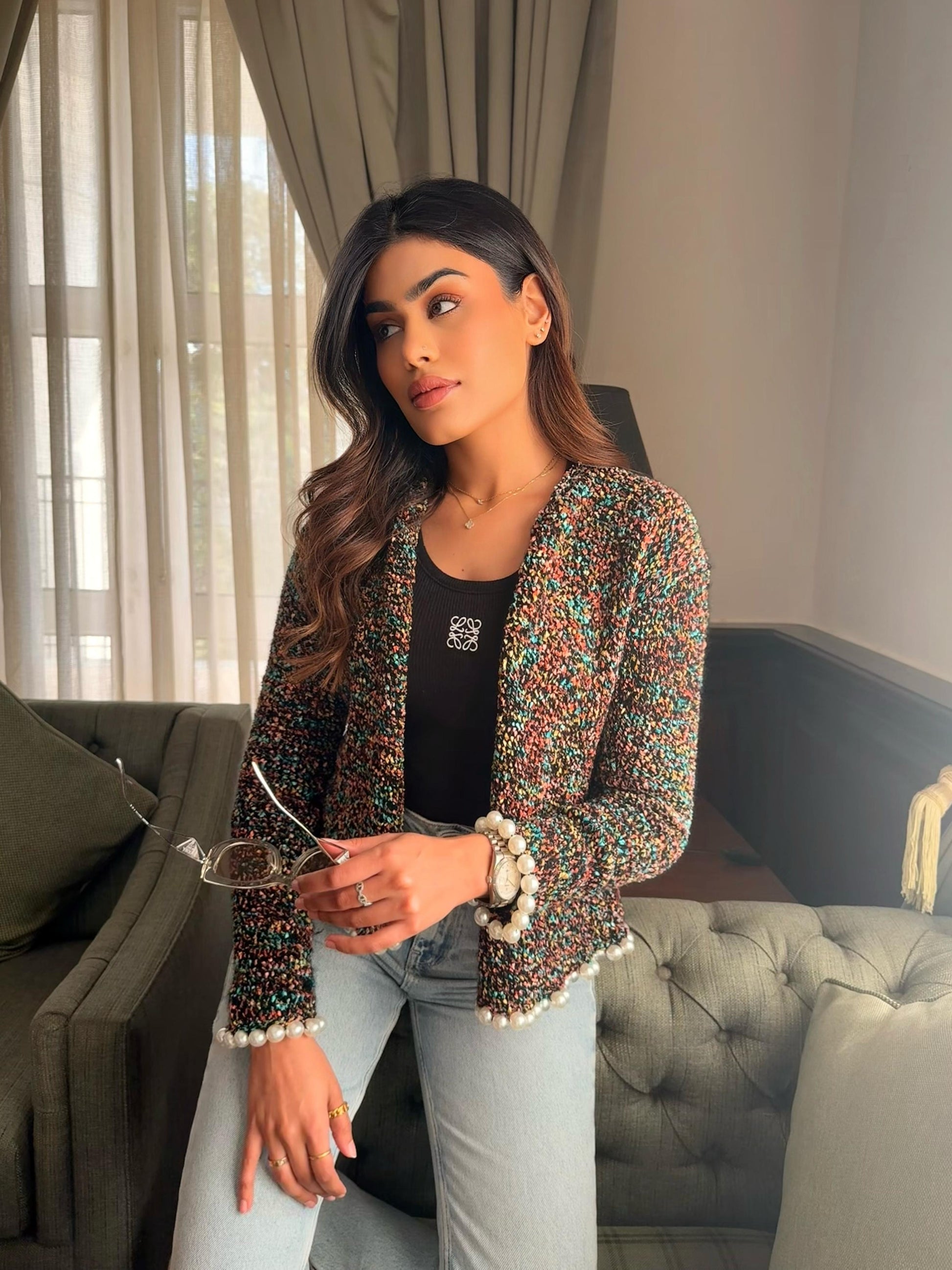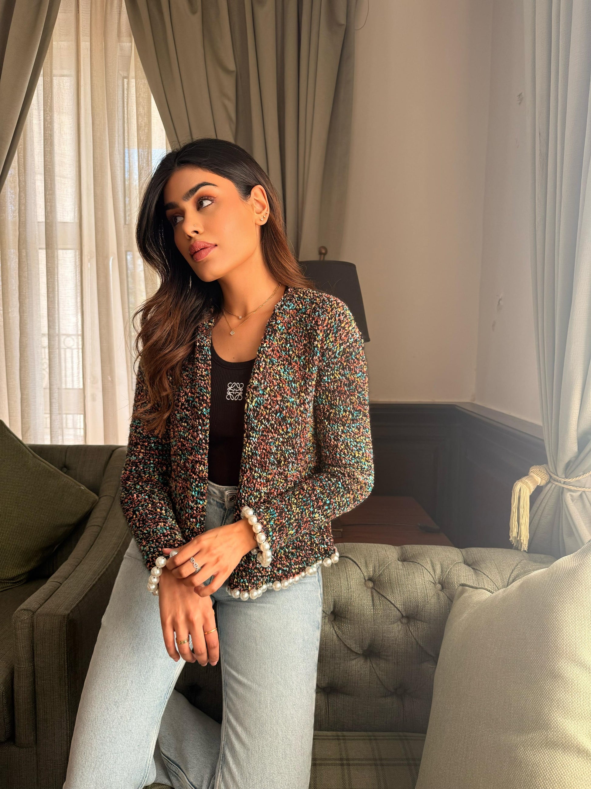 Noir No. 7 is a celebration of craftsmanship and quiet luxury. Handcrafted from start to finish, this timeless black knit is meticulously made by hand, with each individual pearl thoughtfully attached one by one — a process that transforms a classic silhouette into something truly special.